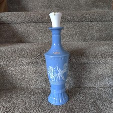 Vintage 1960 Greek Chariots Blue Milk Glass Liquor Decanter Bottle With Stopper