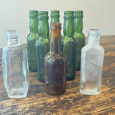 Lot Of 8 Antique Miniature Glass Bottles 5” Mini Green Amber Clear USA & Canada