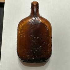 Vintage Amber Glass Bottle, George Washington Design, One Half Pint, (M1906)