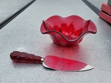 Vintage Ruby Red Glass Ruffled Bowl Glass Dish Vintage and cake knife