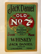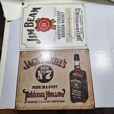 Jim Beam JACK DANIELS Tin ADVERTISING SIGN OLD No7 TENNESSEE WHISKEY 12x15”