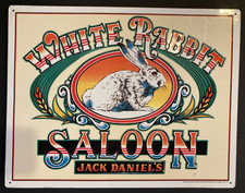 Tin tacker 17X13" Jack Daniels White Rabbit Saloon advertising man cave sign