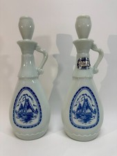 Vintage 1965 Jim Beam Milk Glass Blue & White Whiskey Decanters With Lids