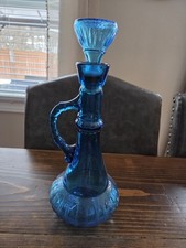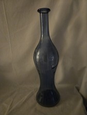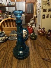 13 1/2" TALL VINTAGE BLUE GLASS GENIE BOTTLE, RIBBED CORSED DESIGN (NA)