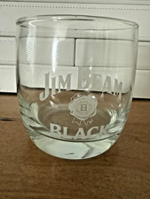 VINTAGE - JIM BEAM BLACK - 12 OZ ETCHED WHISKEY ROCKS GLASS - PREOWNED