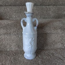 Vintage 1971 White Marbled Slag Milk Glass Olympic Discus Decanter