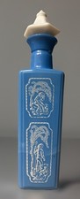 Vintage 1960 Greek Chariots Blue Milk Glass Liquor Decanter Bottle With Stopper