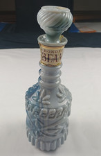 Vintage Jim Beam Decorative Blue & White Milk Glass Whiskey Decanter / Bottle