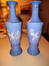 2Vintage Glass Bottle Decanter Jim Beam Bourbon Greek Chariot Wedgwood Blue 12"H
