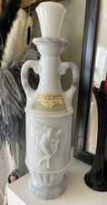 Vintage 1971 Jim Beam White Marbled Slag Milk Glass Olympic Discus Decanter 13''