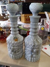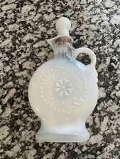 Vintage White Opalescent Milk Glass Jim Beam Decanter Lot Glass Empty