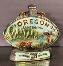 Vtg 1959 Jim Beam OREGON Centennial 1859-1959 Whiskey Decanter 9" Beaver Fishing