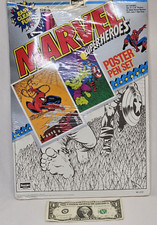 Vintage Spider Man Super Heroes Poster Pen Set 1991 Roseart Marvel New Toy