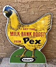 Vintage Kraft Farm Chicken Feed Seed Advertising Sign 'Milk-Bank Boost from Pex