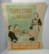 Meat Locker Butcher Shop Advertising Farm Cattle Beef 1950's Vintage Sign Poster