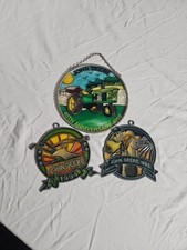 John Deere Vintage Stained Glass Window Sun Catcher Hanger Lot Set of 3