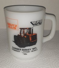 Vintage ALLIS CHALMERS Tractor Milk Glass Advertising Mug Deutz Allis IOWA 1986