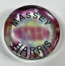 Massey Harris Glass Paperweight Tractor Advertising Folk Art 3.5" Vintage