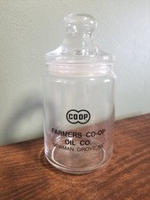 Apothecary Jar Vintage Advertising Glass with Lid Farmer's Co-op Oil Company