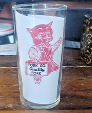 Vintage Advertising Glass , York Co. Quality Pork , Pig / York PA Pennsylvania