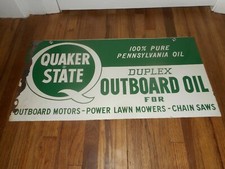 Vintage ORIGINAL DST QUAKER STATE DUPLEX OUTBOARD MOTOR OIL ADVERTISING SIGN