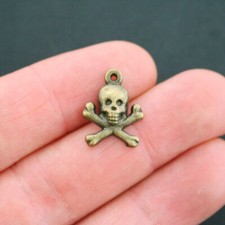 10 Skull and Cross Bones Charms Antique Bronze Tone - BC1217