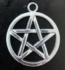 4 Pentagram Charms Antique Silver Pewter Five Star Point Circle Wiccan 29x25mm