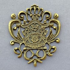 Lion Crown Shield Heraldry Pendants 38x45mm Antique Brass Plated Alloy 3 Per Pkg