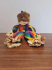 Vtg Birthday Party Clown 14” Doll Toy Rainbow Block Base Shelf Sitter Handmade