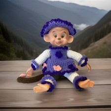 Vintage Rubber Face Monkey Plush Handmade Crocheted Dress Stuffed Animal