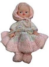 Vintage Toy Baby Doll with Crocheted Dress, Shoes and Bonnet child toy