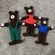 VTG GOLDILOCKS & THE 3 BEARS HANDMADE CROCHET KNITTED PLUSH TOYS CHILDRENS DOLLS