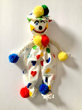 CLOWN Vintage Yarn Pom Pom Clown Handmade Soft Toy Bright Cheerful Colorful