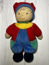 Vintage Handmade Crochet Plush Clown Doll Colorful Bright 13"