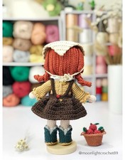 Little Cathy Crochet Doll, Handmade Amigurumi Doll With Overalls And Basket