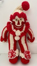 Vintage Hand Crochet Yo yo Clown 18" Red, Green, White Silly Toy