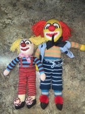 Set Of 2 Vintage Handmade Knitted Stuffed Soft Toy Clown Dolls