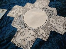 Antique 'MARY CARD' ROSE Filet Hand Crochet Small Centrepiece/Large Doily