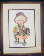 Framed Crewel Embroidery Picture Jody Toy Horse Needle Treasures Jan Hagara VTG