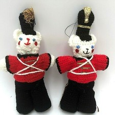 Lot of 2 Vintage HandMade 3D Crochet KNIT Christmas Ornament TOY Bear SOLDIER