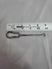 Antique Victorian Silver Tone Button Hook Shoelace Corset Skate Lace Puller