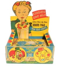 Vtg 7 Circus Pals Drinking Straws / Cut Out Toy (Jo-Jo, Maxie) Selling Display