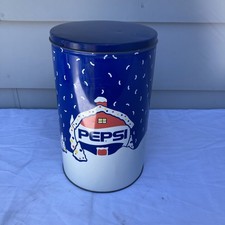 VINTAGE Pepsi Tin Winter House Snow Lights Tree Office Trash Can Advertising 13"