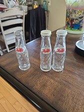 Vintage Pepsi Cola Advertising Novelty Glass Bottle Salt & Pepper Shakers 4 1/2"