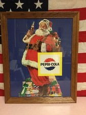Vintage Pepsi Cola Christmas Cardboard Advertising Sign Framed in Mint Condition