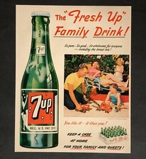 Happy Family Landing Plane Toy 7 Up Soda Pop Vtg 1949 Ad Seven Case Glass Bottle