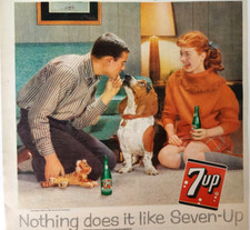 Beagle Couple 7 Up Soda Pop Vintage 1959 Ad Seven Case Glass Bottles Toy