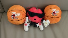VTG 80s Lot of 2 7up Cool Spot Plush Toys Reverses to Soda Can & Basketball