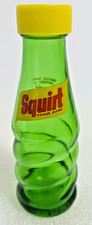 Vintage Squirt Soda Bottle Shaker Green Glass Yellow Lid Advertising