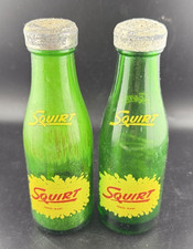 Retro Vintage Squirt Soda Advertising Green Glass Bottle Salt & Pepper Shakers